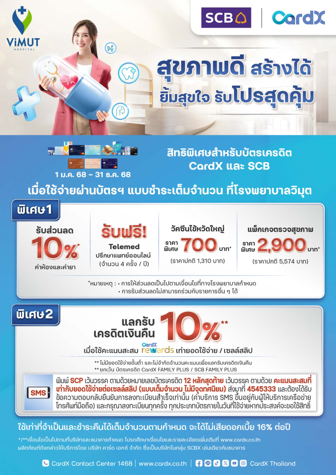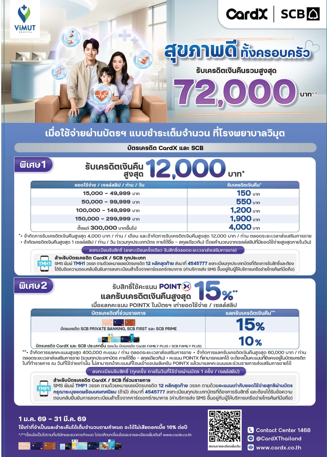 โปรโมชันรับเครดิตเงินคืนสำหรับบัตรเครดิต SCB | Card X